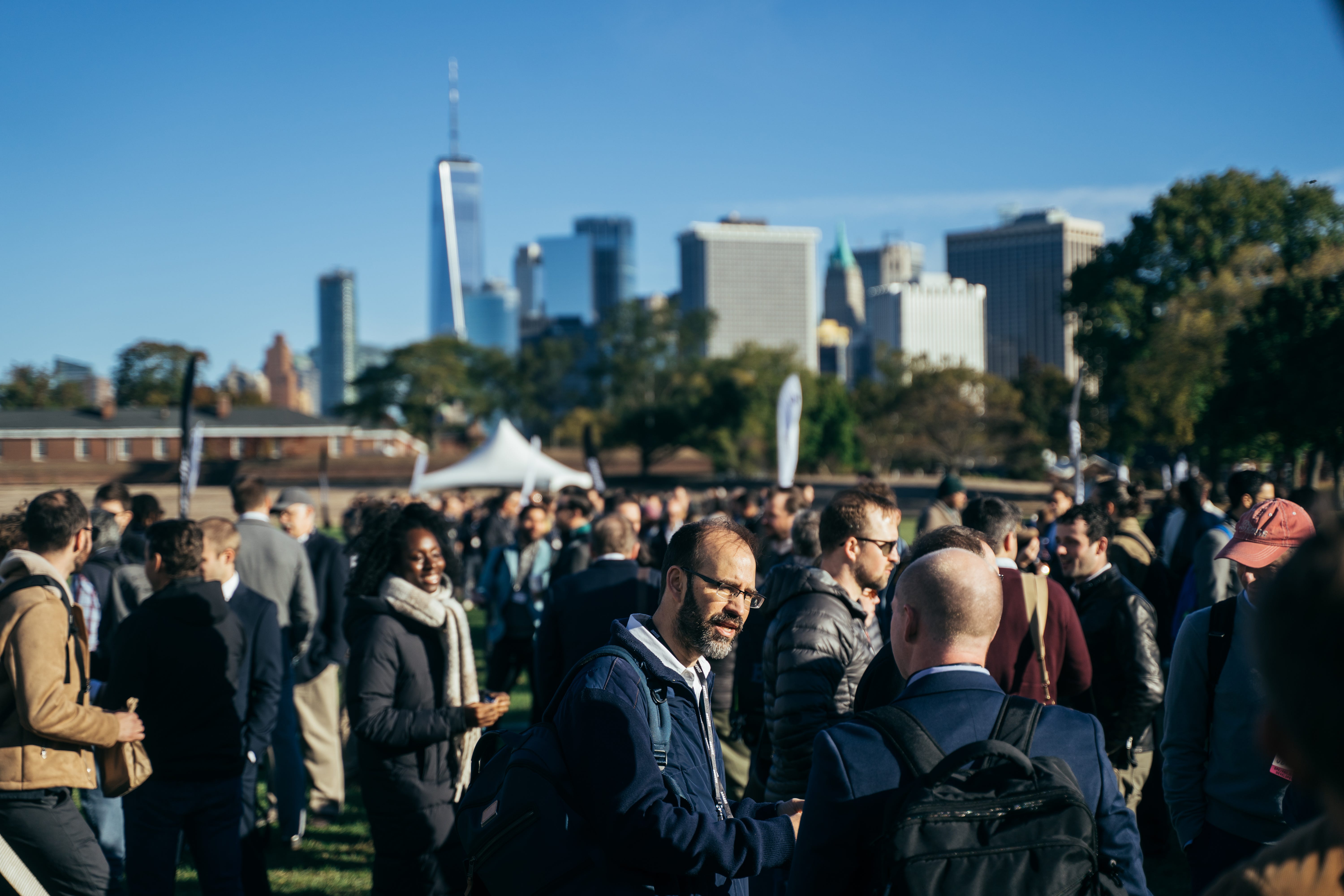 Then, on the day of the main event on Governors Island, all the energy inside the tent was perfectly complemented and supplemented by the sun-powered vibes outside. Being literally in “island mode” reinforced the feeling of close-knit community, as the Parade Ground setting created an illusion of isolation from the city that was pierced only by the skyline in the distance and the (frequent) whirring of helicopters whizzing across the harbor. This community has always been marked by a sense of openness, and seeing attendees making new friends over burritos on the lawn during lunch, holding impromptu meetings at picnic tables in the afternoon, and having passionately wonky conversations over pizza and drinks long after dark8 all felt like quintessentially DERTFian scenes.